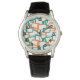 Este relógio masculino tem uma design moderna do século médio de retângulos mastigados com buracos brancos em tons de lacre e tons de laranja.