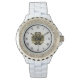 Os relógios são a melhor maneira de se expressar. O relógio feminino exibiu a imagem "Poesia Meditativa" de Carmen Fine Art em tons de amarelo, preto e branco em um estilo espiritual moderno e inspirador.