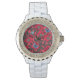 Relógio Rosa de cão e borboletas em vermelho e azul