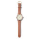 Monitorização da Vintagem Dourada com Rosa masculino com uma Precinta de Couro Marrom, mostrando algarismos árabes em negrito em rosa de ouro (#B76E79) em um fundo esbranquiçado (#F5F5DC). Este cronograma personalizável pode ser personalizado com seu monograma, nome ou imagem, fazer-o como uma escolha clássica e sofisticada para o trabalho ou eventos formais.