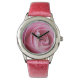 Um bonito e feminino relógio floral mostrando a imagem de uma rosa rosa rosa. Os significados por trás do envio de flores para alguém podem ser expressos em sua cor. Uma rosa pálida mostra sentimentos de amor, gratidão e o florescimento de um novo romance. Esta fotografia rosa rosa rosa vê as pétalas do rosa aspergidas com gotas de chuva.