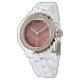 Esta é Rosé cinante em um Vidro com Flower Carving. Linda cor Rosé no fundo rosa.