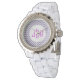 Nosso Relógio de Enamel Branco Rinoceronte Rinoestone, Purple Chevron, é uma ideia legal de presente! O Mod inspirou design apresenta um padrão de gavão abstrato em roxo e branco unido com monograma. Personalize facilmente adicionando seu monograma personalizado sem custos adicionais! Disponível em diversos estilos de observação. Dê-o ou arranje um para você.