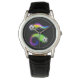 O clássico relógio de pulseira de couro mostrado a preto com um impressão de bolas de futebol flamejante esportivo. Escolha esta monitorização a partir de vários estilos. Personalize este relógio ou comprar como está. Imagem do stock all-free-download.com