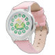 Cartoon Kawaii de um sapo com olhos cintilantes e uma coroa em sua cabeça. O príncipe sapo está sentado numa almofada de lírio na lagoa olhando para cima com um coração à volta da cabeça. Os números da face do relógio são colocados exclusivamente em almofadas de lírios para se relacionarem com todo o tema. Este design adorável e colorido o torna atraente para as crianças. Projetado por Rusty Doodle.