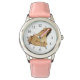 Uma pintura de aquarela de um Sapo de madeira enfeita este relógio!