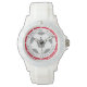 Seu próprio nome mais o time de futebol que você apoia em um relógio. Tema de cor vermelha.