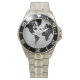 Relógio silhueta de avião sobre o mapa negro mundial