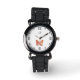 Silhueta borboleta em rosa de aspecto em fundo branco. Números árabes e pontos adornam o rosto de relógio. Adicione um monograma a este design feminino agora.