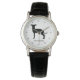 O design original da silhueta negra de Destei de um lindo cão italiano Greyhound / Iggy. A cor da silhueta pode ser alterada para qualquer outra cor na ferramenta design, se assim o desejar. Há também uma área de texto personalizável para um nome. A face do relógio é feita de linhas pretas simples.