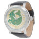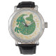 Sinal de Capricórnio do zodíaco em verde e branco num relógio de pulso.