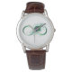 O símbolo do infinito com uma pena brilhante, verde, de pavão artístico sobre um fundo branco. Tatuagem.