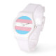 A Bandeira do Orgulho Transgênero foi criada pela trans americana Monica Helms em 1999, e foi mostrada pela primeira vez em uma parada de orgulho em Phoenix, Arizona, Estados Unidos em 2000. A bandeira representa a comunidade transgênero e consiste em cinco faixas horizontais: duas azuis-claras, duas cor-de-rosa e uma branca no centro. As listras de cima e de baixo são azuis-claros, a cor tradicional para os meninos. As listras próximas a elas são cor-de-rosa, a cor tradicional para meninas. A faixa no meio é branca, para quem está em transição ou se considera um gênero neutro ou indefinido.
