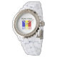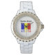 A bandeira tricolor vermelha, amarela e azul romena, com a palavra ROMÊNIA abaixo, nas cores da bandeira. Personalize com seu nome no espaço fornecido para uma aparência especial. Ou, crie um presente personalizado adicionando o nome de outra pessoa.