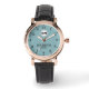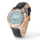 Fresh, elegant, and effortlessly stylish — this sky blue and gold personalized watch brings a touch of serenity and sophistication to your wrist. The soft pastel blue dial with black numerals and a refined monogram crest exudes calm confidence, while the rose gold bezel and white crocodile-textured leather strap create a timelessly chic contrast.