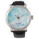 Este é um relógio de tema do céu muito fácil de personalizar, pois este modelo só precisa adicionar o nome. Este é um presente excelente personalizado para aniversários, graduação, Natal, feriados, como presente de apreciação, e para qualquer ocasião especial em geral. Elementos sobre a composição da design, nuvens e céu, cores tons azuis e tipografia lettering.