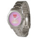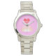 Na Starlit Hearts Fashion, nosso coração vermelho brilha um relógio de pulseira prateada sobredimensionado com um coração vermelho esmaecido, um sol brilhante, e um pano de fundo rosa são uma adição excelente à sua cozinha e um belo presente para qualquer celebração ou evento.