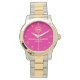 minimalist couple watch, personalized monogram watch, pink background wristwatch, yellow Roman numerals, custom name couple gift, elegant anniversary watch, wedding keepsake, modern love watch, romantic personalized wristwatch, stylish monogram timepiece