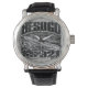 Este é um Vintage Black Leather Strap Watch on Subsea Besugo (Relógio da Torre Negra de Couro Masculina). O submarino Besugo, um submarino da classe Balao, era um navio dos Estados Unidos nomeado para o besugo.