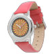 Um design muito brilhante e colorido. Um sol estilizado com um centro espiral e em cores flamejantes preenche todo o rosto do relógio. Não há números na cara. Devido ao design das mãos, a versão Stainless Steel pode ser um pouco mais difícil de ler do que os outros estilos.