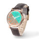 Assista em um design de explosão solar moderna e geométrica do século Médio, formado por triângulos, com forma de diamante marcando a cada hora, em tons de aqua / turquesa leve, e chocolate de leite marrom, acentuado com lacrimejo e azul