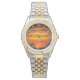 Pintura da Coleção "Sunset Plaza Marina 2584" Perfeito para o veste diário, este relógio de prata e ouro com dois tons pode ser personalizado para corresponder ao seu estilo. Adicione seu texto para personalizá-lo para uma incrível declaração de estilo! Personalize na página do produto ou clique no botão "Personalizar" para obter mais opções de design. A design criada da minha pintura "Sunset Plaza Marina 2584" captura um pôr do sol vibrante com listras de cor laranja e vermelha enchendo o céu, enquadrada por vegetação silenciada e plantas floridas no primeiro plano. As tons brilhantes do céu contrastam dramaticamente com os contornos escuros da paisagem, criando uma cena serena mas dramática. Os produtos correspondentes estão disponíveis nesta coleção.