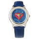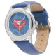 Uma versão biselada do logotipo clássico Superman S-Shield sobre uma textura azul de tecido.