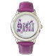 Relógio Susan, Name, Logo, Girls Purple Leather Watch.