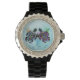 Ilustração gráfica das tartarugas marinhas coloridas no oceano. O relógio brilho da tartaruga marinha é uma ideia de presente de excelente para qualquer ocasião especial! Escolha seu estilo de relógio favorito e sua cor de fundo.
