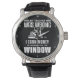 This humorous wall clock celebrates the unique way truck drivers earn a living. Against a black background, it features a white semi-truck graphic. The bold text "MY TEACHER WAS WRONG I EARN MONEY BY LOOKING OUT THE WINDOW" is prominently displayed in distressed white lettering, making a witty statement about the profession's unconventional "office view" and the value of practical skills over traditional education.