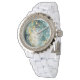 Relógio Teal e Dourada Marble Rhinestone Watch - White Ena
