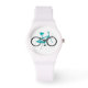 Um design divertido com uma bicicleta aqua legal pronta para mantê-lo a tempo enquanto pedalava.