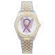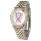 O relógio de pulso apresenta a arte de um anjo de fita de reconhecimento roxo. A mensagem no relógio anota "TIME TO HOPE", mas pode ser personalizada para mudar a mensagem para "CURE" ou outras palavras. Este relógio de pulso de fita de reconhecimento roxo faz com que as joias de anjo da fita de reconhecimento do excelente sejam presentes! Uma fita de sensibilização púrpura significa o apoio ao Câncer de pâncreas, à doença de Crohn e à colite, à doença de Alzheimer, ao assédio por Gay (Dia do Espírito), ao Sobrevivente de câncer (Todos os tipos), à violência doméstica, ao lúpus, à síndrome de Sjögren, à dor crônica, ao Leiomiosarcoma, à malformação de Arnold-Chiari, aos migrantes, ao cístico colofônia, Retinite Pigmentosa e Fibromialgia. Que esta fita de consciencialização roxa apoie estas causas!