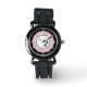 Personalize o estilo da precinta e o estilo da tampa frontal no relógio de tênis exclusivo desta rapariga com iniciais editáveis. Design é um gráfico de texto circular no centro em detalhes cor-de-rosa e preto e branco. Basta editar as letras no editor fácil do Zazzle. Muitas outras opções de estilo disponíveis para selecionar para personalizar ainda mais para torná-lo um presente pessoal excelente para uma criança.