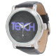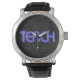 Sinal de marqueado TEACH neon roxo brilhante na parede de tijolos urbanos.
