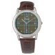 relógio de pulso da pulseira de na moda, com o clássico clã Thomson tartan, azul e marrom, padrão de xadrez, na face, com números brancos e pontos durante as horas. O texto personalizado branco lê Thomson, e pode ser personalizado para ler o que você quer.