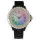 Um relógio de pulso vibrante e na moda que combina funcionalidade com um toque pessoal. Este relógio atraente mostra marcadores de horas numéricas romanos e dois campos de texto personalizáveis, lendo atualmente "Melhor Mãe Nunca" e "Desde 19XX", que podem ser adaptados para se adequarem a sua preferência. Em relação a um fundo de gradação do arco-íris colorido, você pode personalizar esses campos com um nome, mensagem especial, data de nascimento, aniversário ou qualquer detalhe significativo. Seu design elegante e minimalista o torna ideal para visto casual e profissional, acrescentando versatilidade para qualquer ocasião. Este relógio é um dom fantástico para os entes queridos ou uma adição única à sua coleção. © Wafa Y. Dahdal - Todos os direitos reservados. WD Art