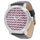 Relógio Tigre Chevron, Rosa Quente e Impressão Preto