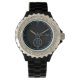Um relógio feminino clássico e sofisticado. Face design preta com marcação de rotinas e sotaques brancos e azuis em um belo invólucro preto. Perfeito para qualquer ocasião. Time Peace by Charlie Fazenda