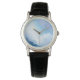 Um relógio de pulso de uma mulher elegante, com uma paisagem pastel do céu.