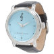 Um design simples e simples com um símbolo de clave de um pequeno e bonito traço sobre um fundo azul claro. Perfeito para todos que amam estilos minimalistas. Personalize facilmente este relógio para o seu nome ou texto.