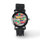 Relógio Trens fofos e padrão de árvores azul