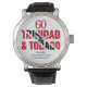 Na moda, patriota TRINIDAD 60º Aniversário do Observatório da Independência para celebrar o 60º ANIVERSÁRIO DE INDEPENDÊNCIA DE TRINIDAD. A design mostra TRINIDAD & TOBAGO na conhecida bandeira estriada negra de TRINIDAD & TOBAGO, com 60 em negrito tipografia vermelha e os anos 1962 - 2022 em texto negro. Os anos 1962-2022 e 60 são PERSONALIZÁVEIS, portanto você pode adicionar seu nome ou criar seu próprio texto, por exemplo, seu nome (família), grupo ou evento (ou excluir). Este relógio da independência do TRINIDADIAN seria um presente ideal para o patriótico TRINIS - ou para celebrar este aniversário, aniversário ou aniversário de casamento significativos. Os suprimentos e ideias de presentes do partido TRINIDADIAN estão disponíveis na coleção TRINIDAD AT 60 por Designs Bereanos.