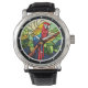 Relógio Tropical Kaleidoscope" - Stained Glass Parrot