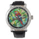 Relógio Tropical Kaleidoscope" - Stained Glass Parrot