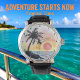 This artistic wall clock showcases a serene tropical scene with a graceful palm tree silhouetted against a vibrant sunset over the ocean. Its decorative and colorful design, with a relaxing vibe, makes it ideal home décor. This nature-inspired timepiece captures a tranquil beach view, bringing a touch of summer vibes and coastal theme to any room.