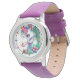 Um lindo unicórnio com flores na parte inferior, em uma pulseira de silicone roxo