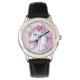Um unicórnio de aquarela, com flores cor-de-rosa, decorações florais.