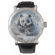 Um urso panda carrega topicamente através de uma paisagem nevada, criando uma onda de neve ao seu redor.