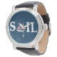 Ilustração de design de texto de vela com decoração de barco à vela em fundo azul escuro. É possível mudar a cor de fundo e adicionar uma diferente à design com sua escolha.
